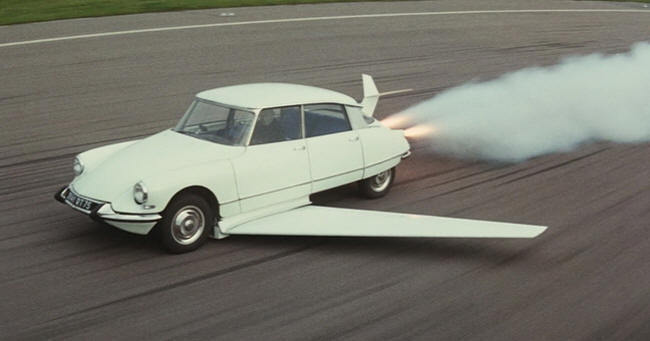 В наземном режиме АэроМобиль выглядит скорее как футуристичный двухместный родстер, учитывая его сложенные над корпусом-фюзеляжем толстые крылья и причудливой формы хвостовую часть.
