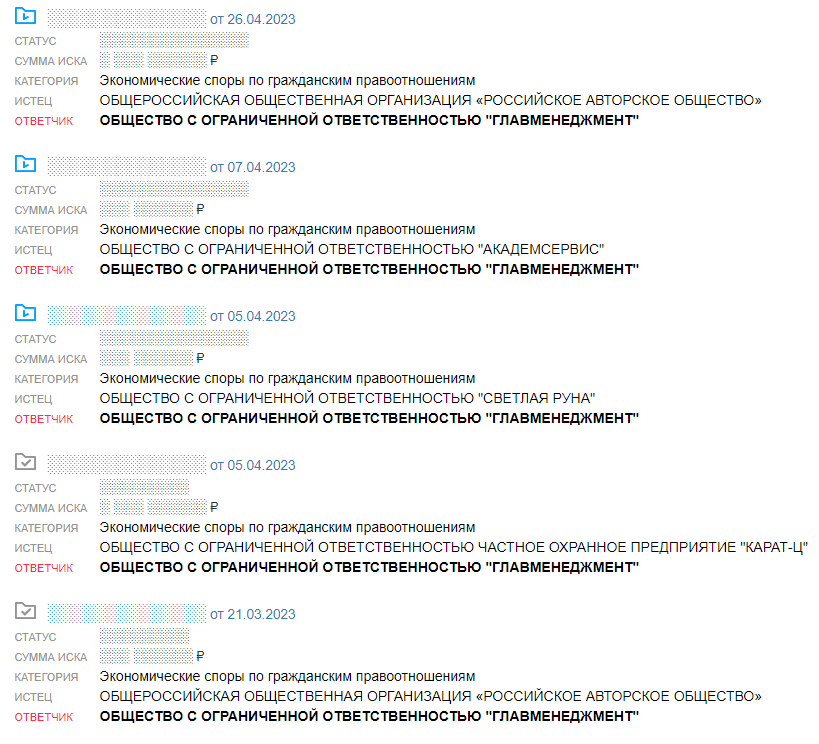 Что касается юр. лица ООО "ГЛАВМЕНЕДЖМЕНТ", в отношении него уже 25 исков на порядки сотен тысяч и миллионы рублей.