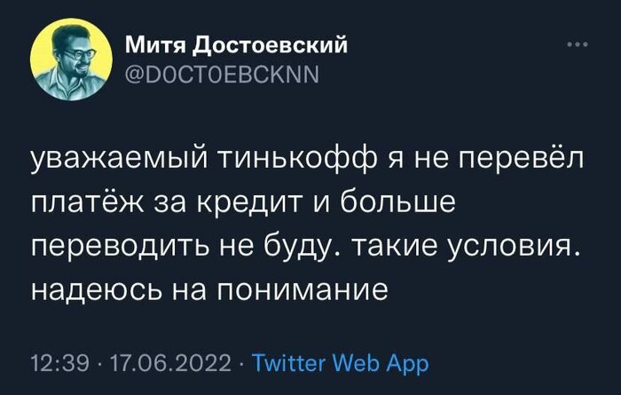 Для сообщества подходит любой скрин, набранный на клавиатуре, даже если это не диалог (под вид Твита) Так же подходит скрин с картинкой и хотя бы одним комментарием под ним, с любого источника.
