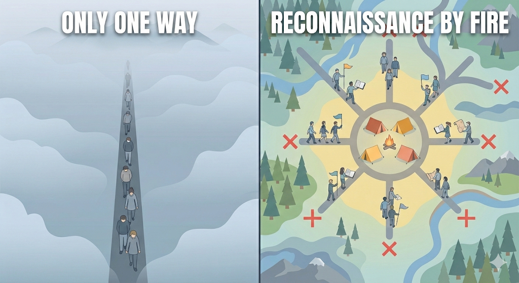 вместо «сделать один большой правильный выстрел» — провести короткую разведку боем,