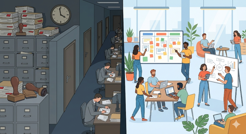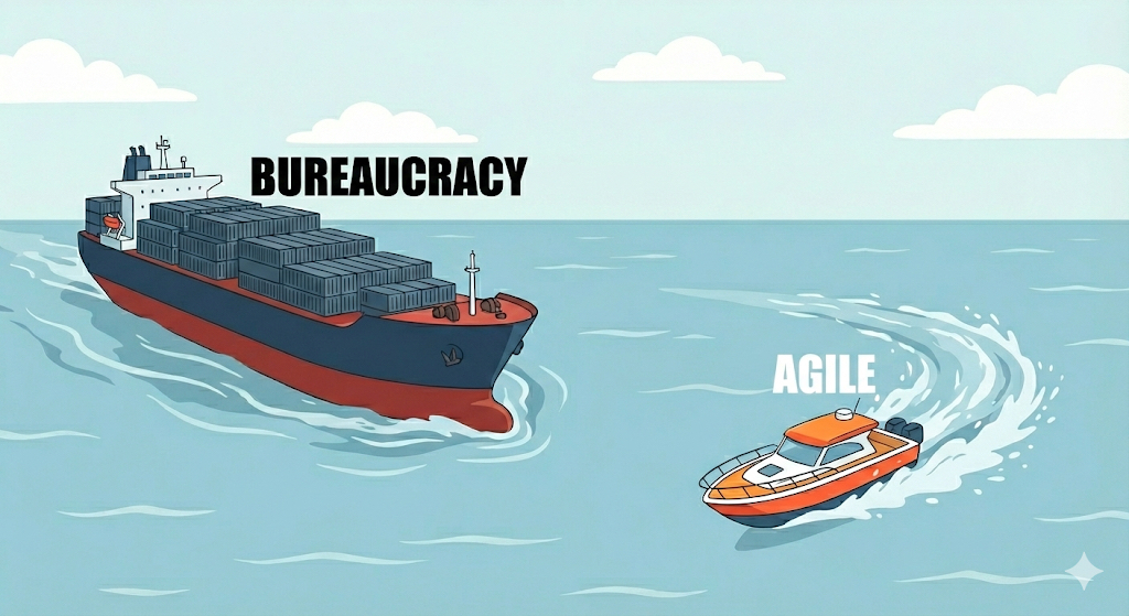 Бюрократия и классический проектный подход решают задачу предсказуемости: чтобы люди знали свои роли, процессы повторялись, а результат можно было встроить в годовой план. В мире, где изменения редкие и медленные, этого достаточно.