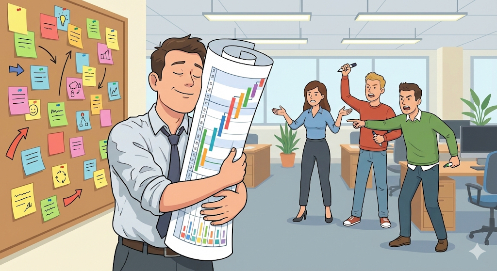 Любая попытка честно скорректировать курс по результатам итерации воспринимается как «неисполнение плана», а не как нормальное обучение. Естественно, после такого у людей возникает стойкое отвращение к слову Agile.