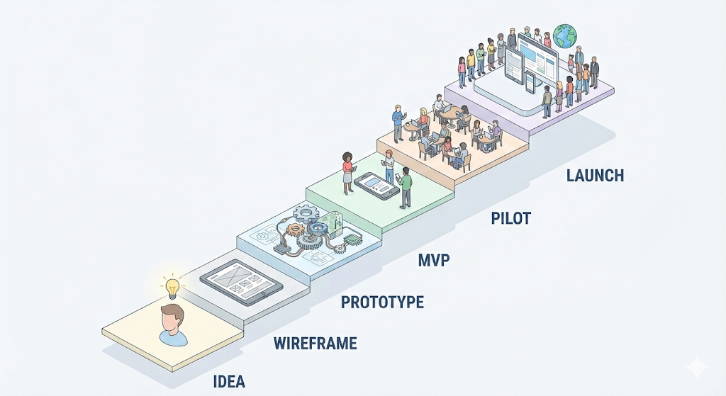 Если оглянуться назад на классический путь фичи или инициативы — Idea → Prototype → PoC → MVP → Pilot → GA — становится видно, что это по сути тоже конфигурация Agile.