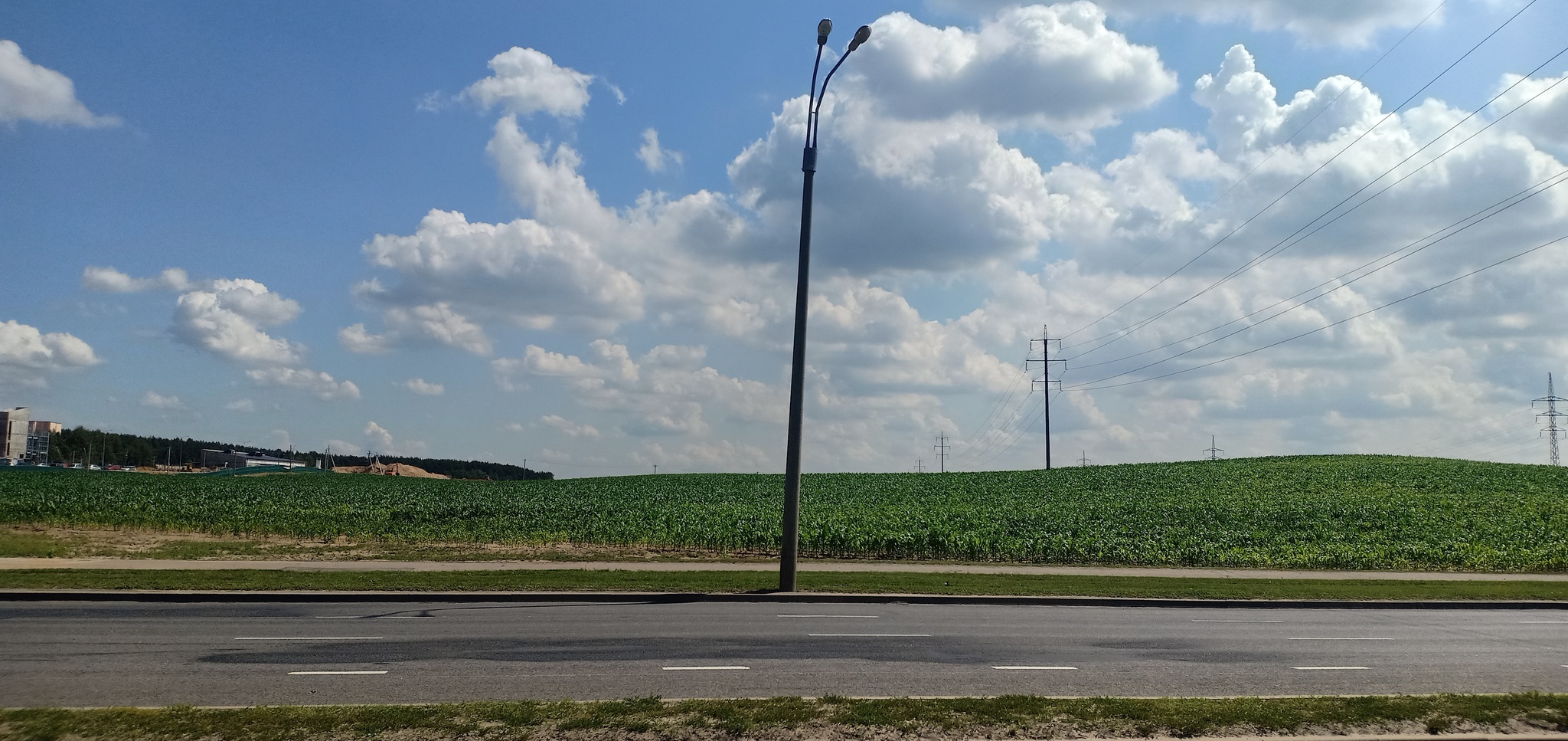 В Минске в пределах Минской Кольцевой Автодороги в Советском районе - не центр, но и не глушь - раскинулись красивые зелёные поля с кукурузой.