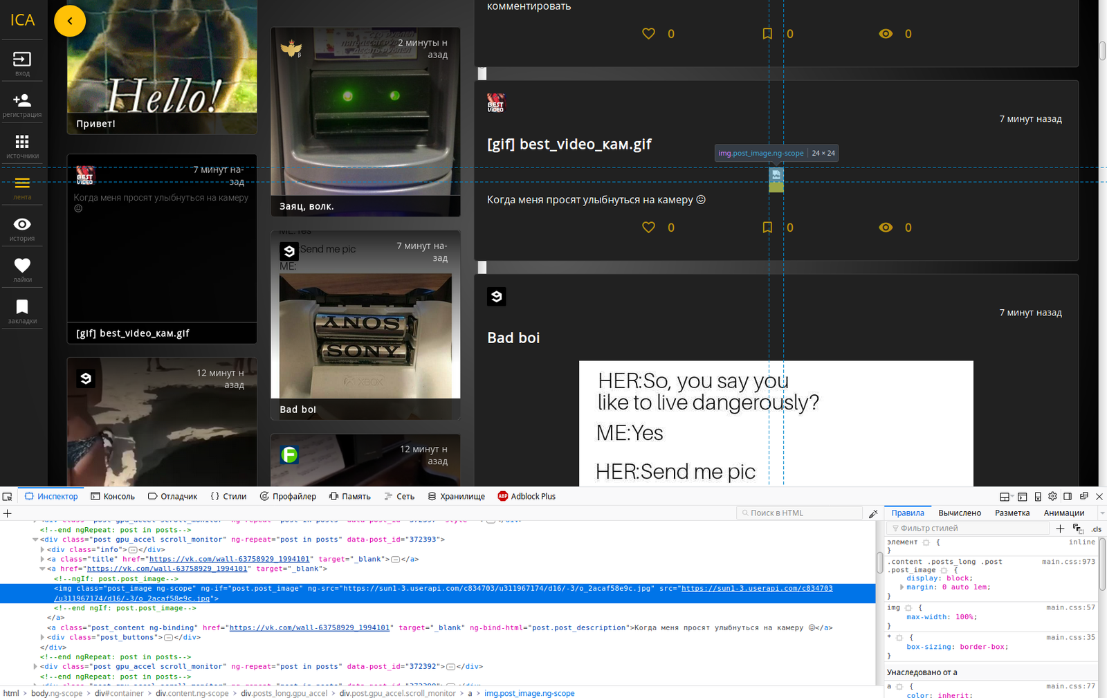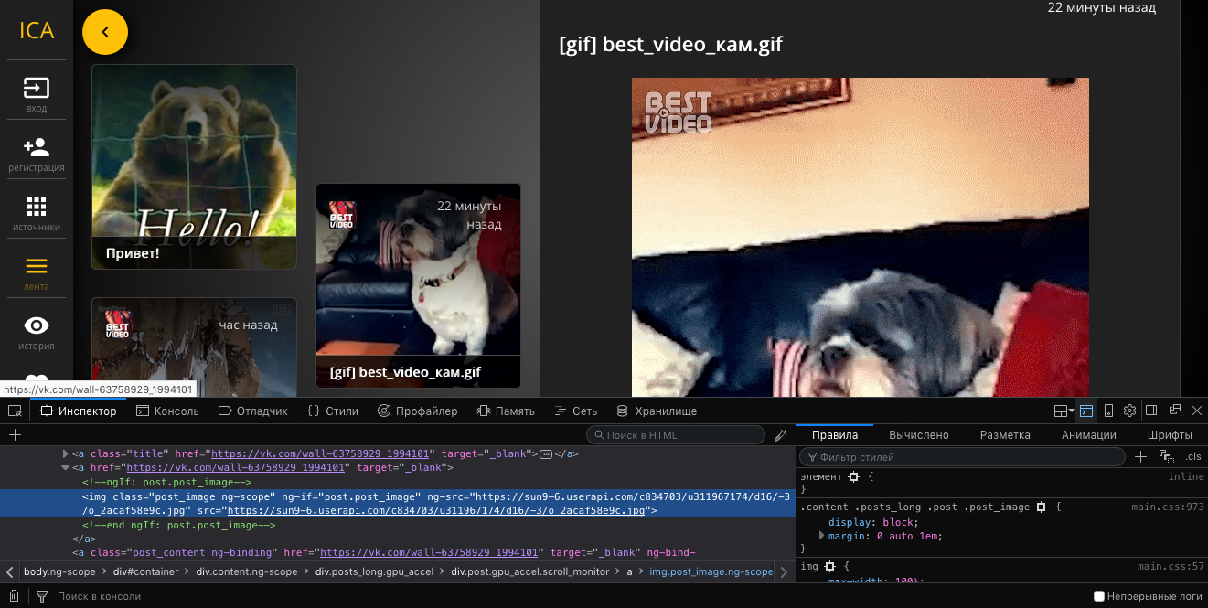 - Добавить в ленту вывод видео и гифок, что бы сократить число внешних переходов;