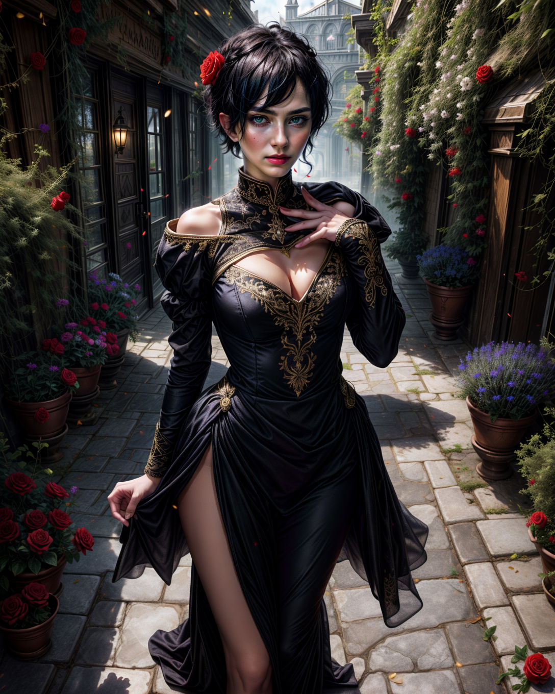 (Единственный момент - там, где она в красном - поменять цвет волос на чёрный)