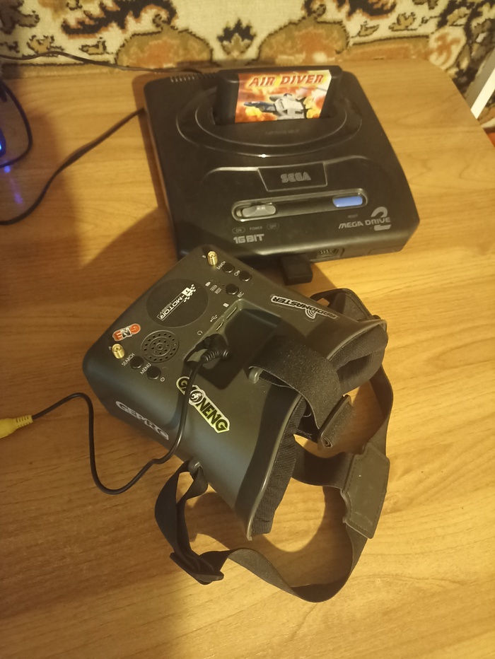 И вот, спустя много лет я увлекся полетапи (не всегда успешными🤣) на FPV и дома естественно лежит всякое полезное, в том числе FPV шлем с аналоговым входом, который отлично подключается к SEGA!