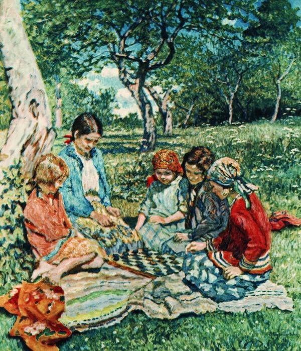 Николай Петрович Богданов-Бельский родился в деревне Шитики Смоленской губернии. В фамилии художника спрессована история происхождения: Богом данный (незаконнорожденный) сын бедной бобылки из Бельского уезда. Простонародную фамилию облагородит сам император Николай II, вписав ее собственноручно в диплом – Бельский.