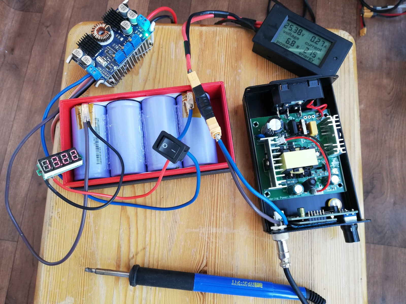 В общем по результатам "примерки" заказал с Али станцию без встроенного БП, когда приедет я её приклею на 2х сторонний скотч поверх коробки с аккумуляторами (вольтметр и кнопка встроятся в коробку), а эту буду использовать стационарно.