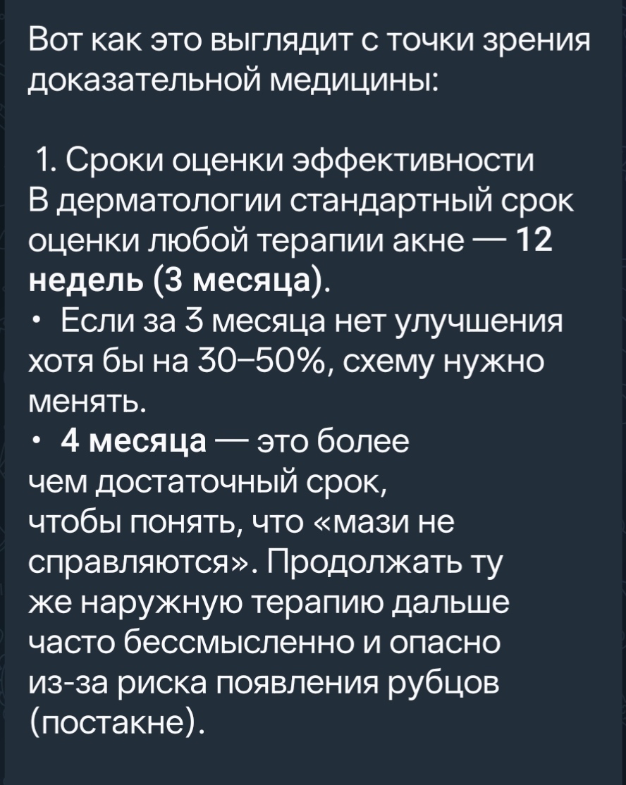 Доктор объяснила, что в связи с моим долгим и безуспешным лечением акне, у меня есть показания для перехода к системной терапии (ретиноидам).