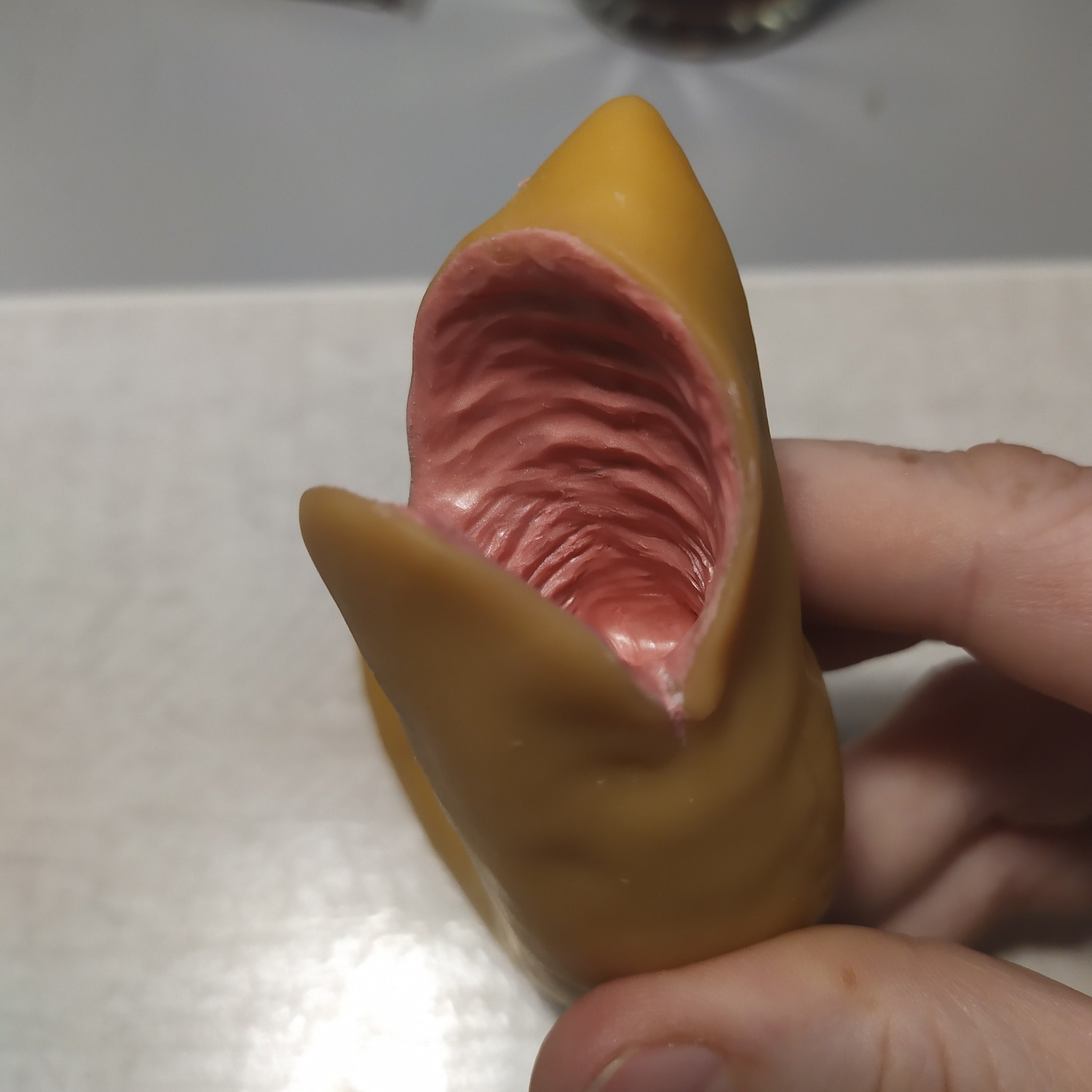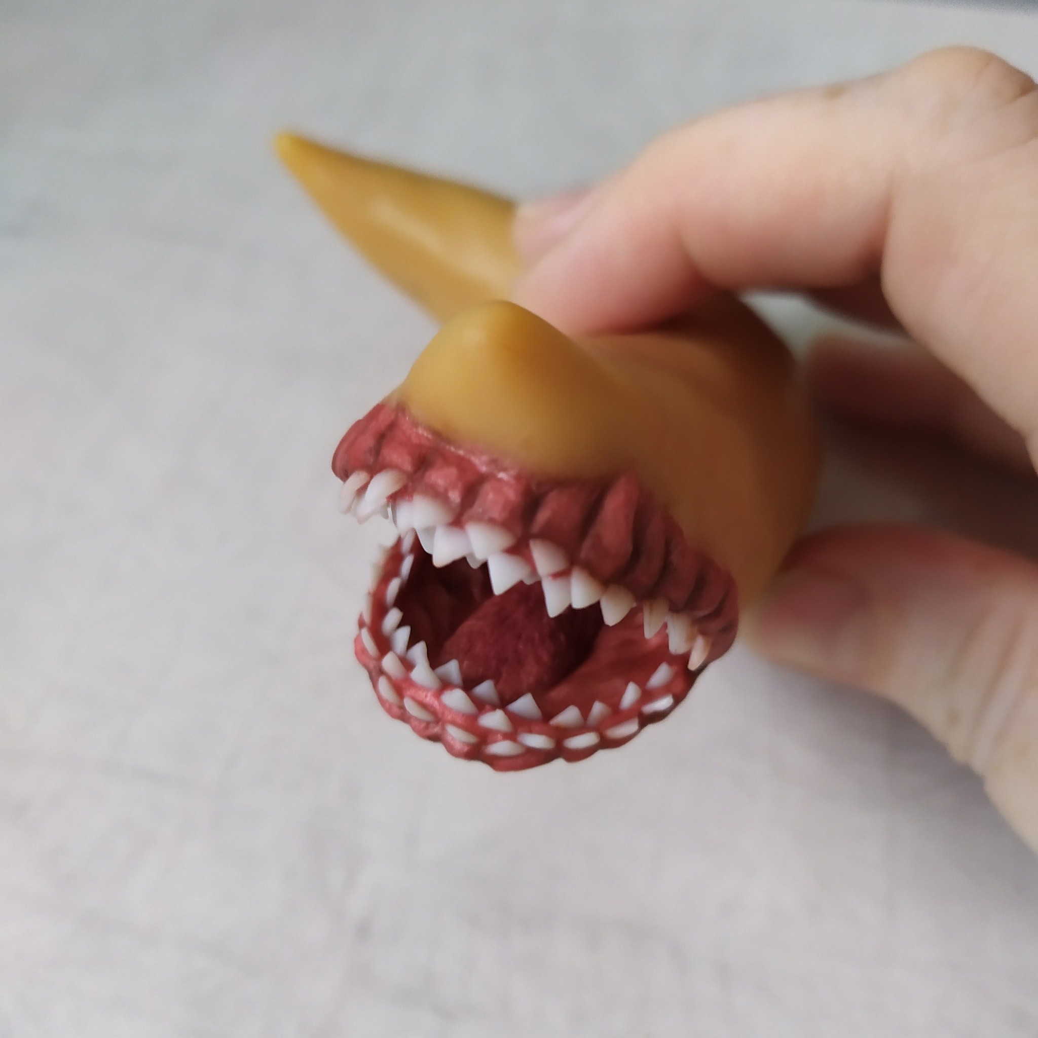 Пасть затонитрована и оснащена зубками. Зубки еще беленькие и целые.