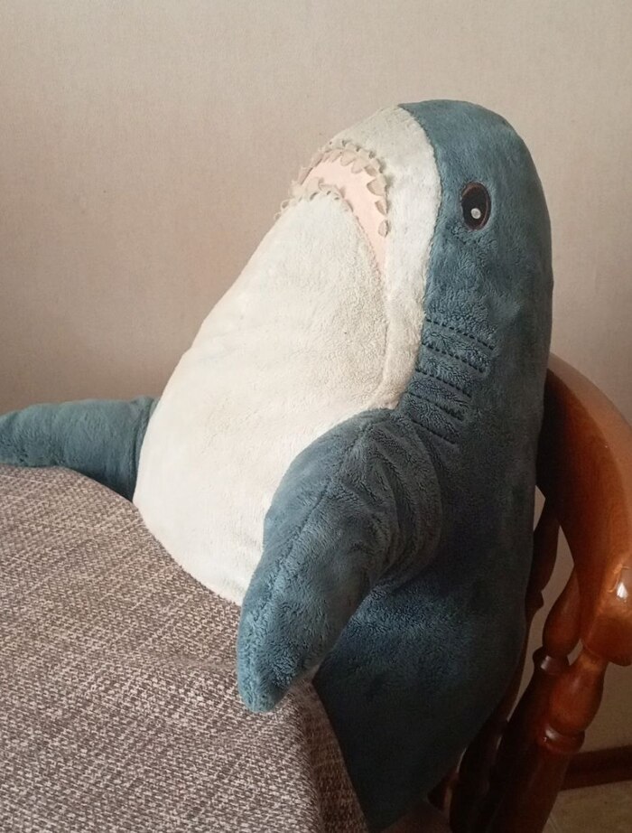 У нас живет акула Лёля. Лёлечка – существо добродушное и очень любопытное. У нее есть акулий мех, который нужно приводить в порядок хотя бы раз в квартал, она много спит и везде сует свой округлый нос.