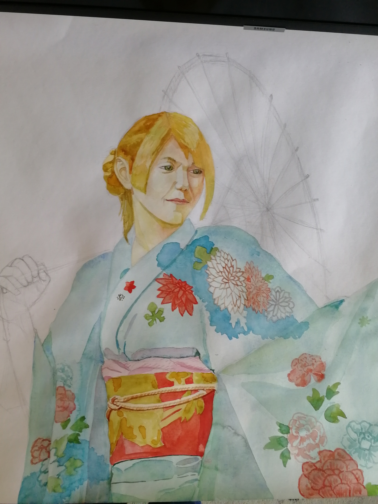 3 FreeBeer 6 лет назад Акварель Делюсь своими попытками писать акварелью. Позировала жена. Формат А1. [моё] Акварель Творчество Кимоно Длиннопост