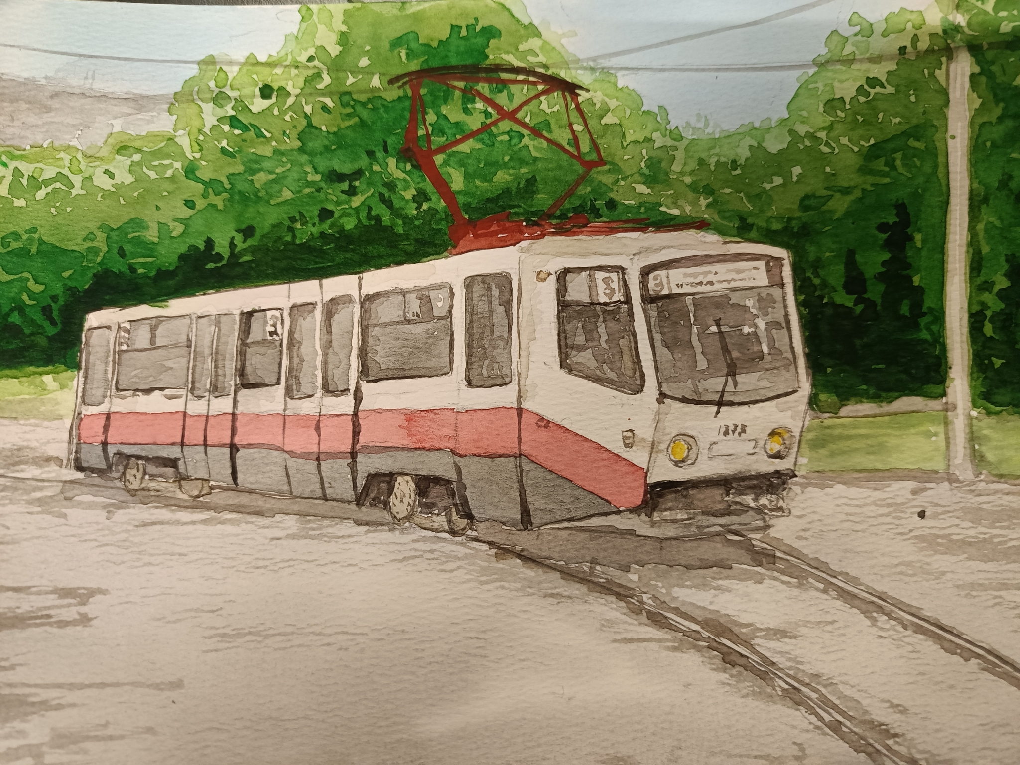 Учусь акварели, давно хотел попробовать нарисовать трамвай