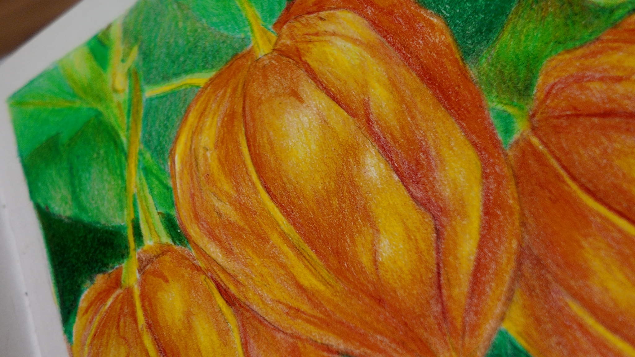 2. Затем раскрасьте картину, используя сухие карандаши для добавления цветов.
