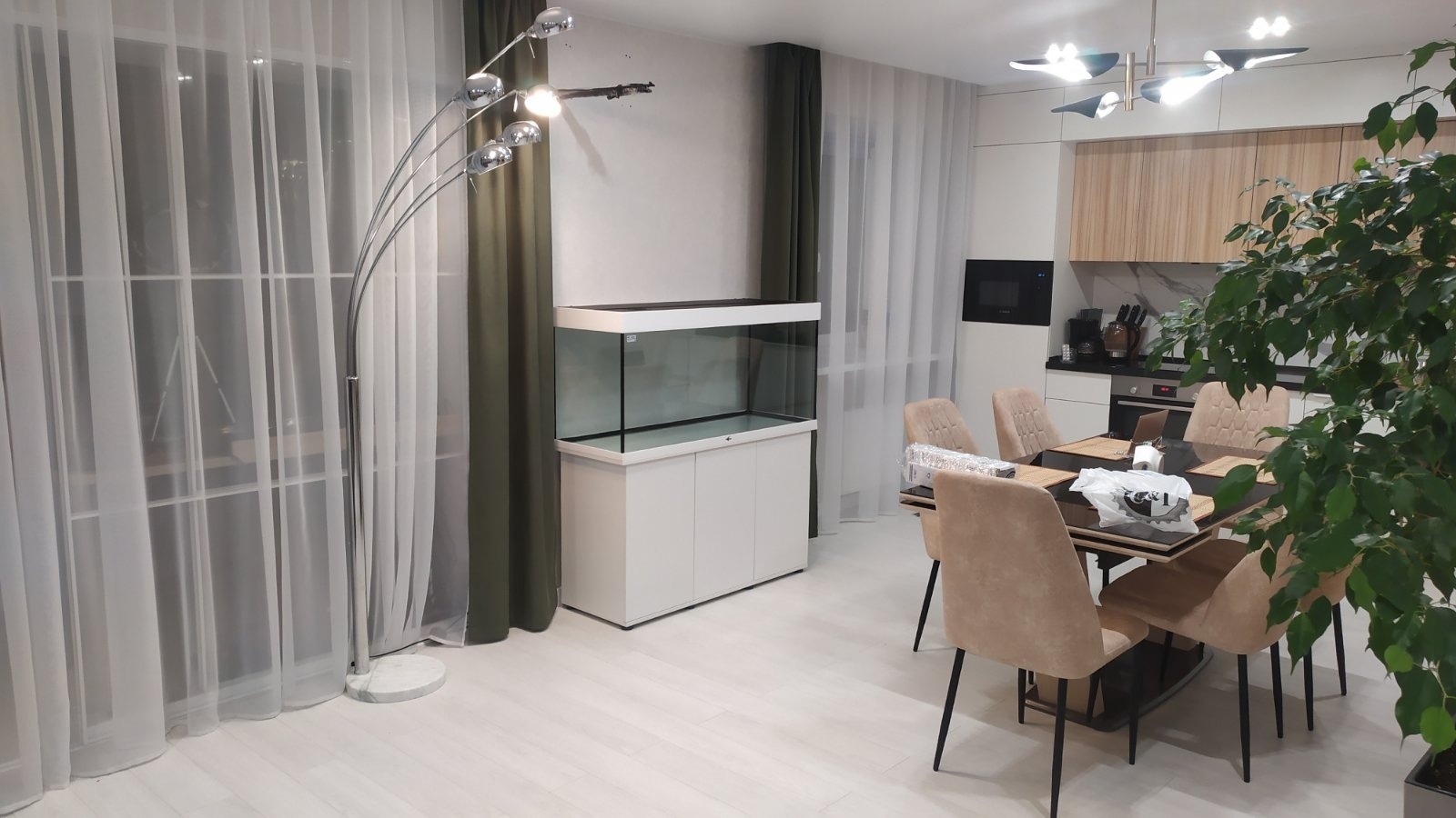 Теперь ожидаааааааааание, недели 2-3 прошло, звонок, дома? Тащим! Притащили, собрали, установили, ДЕНЕГ НЕ ВЗЯЛИ! Все включено, я тут даж закашлялся, как то неудобно было (тк вес аквариума (килограмм 50-70), хрупкий груз, сборка тумбы...), но сказали, уже все включено вплоть до сборки. Порадовали =)