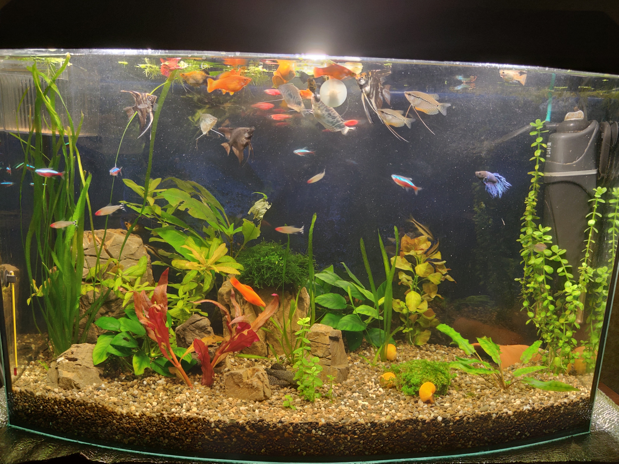 Помню завел тогда себе Скалярию, Петушка, Анциструса и каких то неведомых рыб, которые даже щас, начитавших кучу форумов и отсмотрев тысячи фото не могу определить, но да ладно, какие то были. Комплект, мягко говоря, не очень совместимый =)