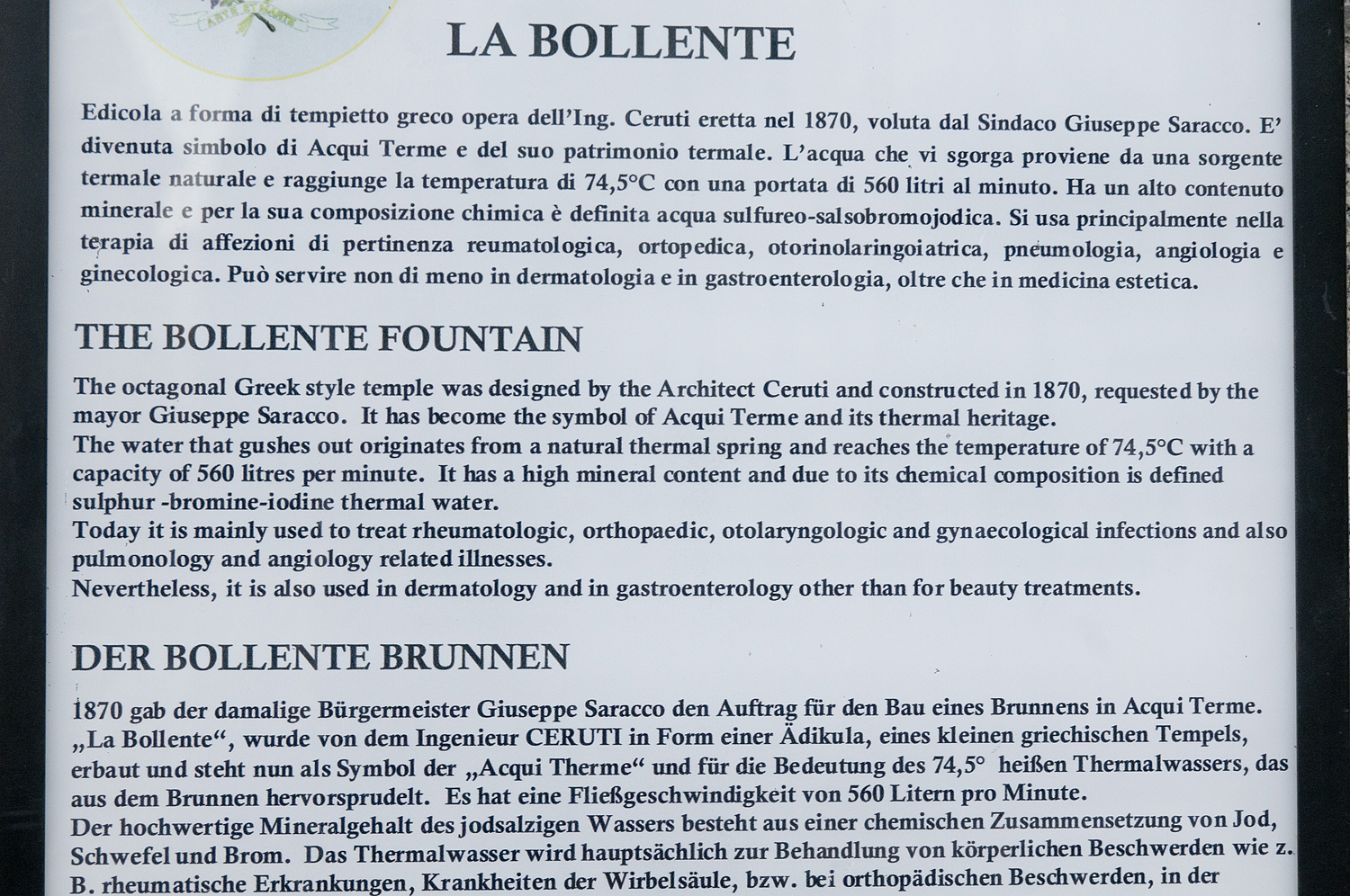 Акви Терме — город в Италии, термальный курорт... Так получилось, что в городе мы ночевали дважды, по пути туда-назад. И оба раза впечатления были не самые приятные. Ну да ладно ! Это субъективно :)