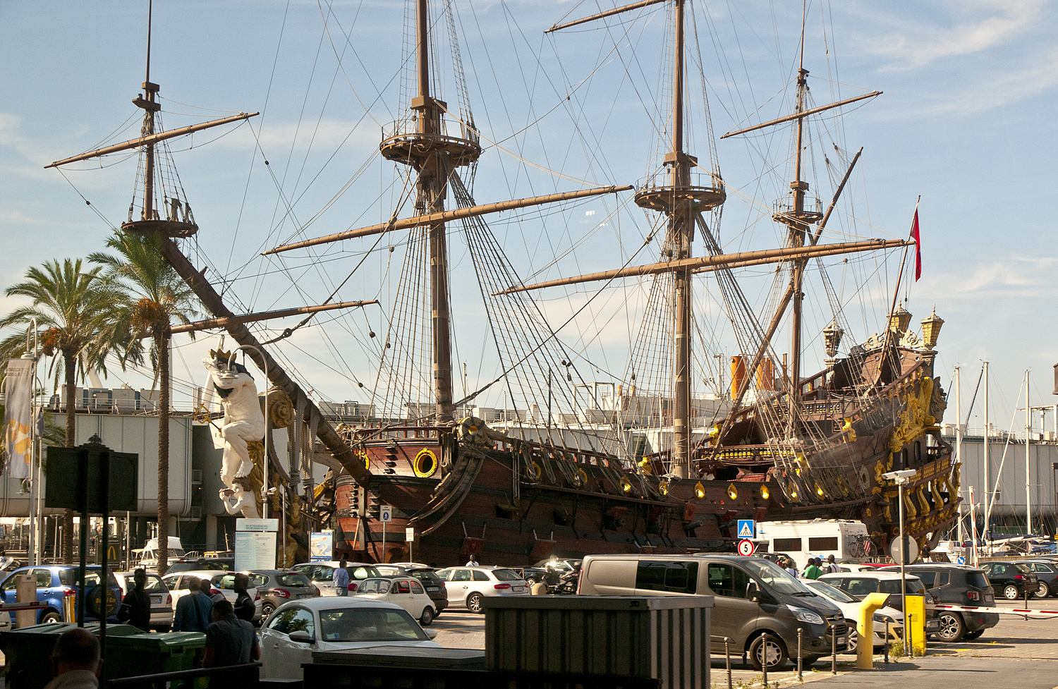 В одной из гаваней стоит вот такой фрегат. Его оставили тут после съёмок фильма. Такой вот подарочек... За ним, прямо на набережной, находится океанографический музей.