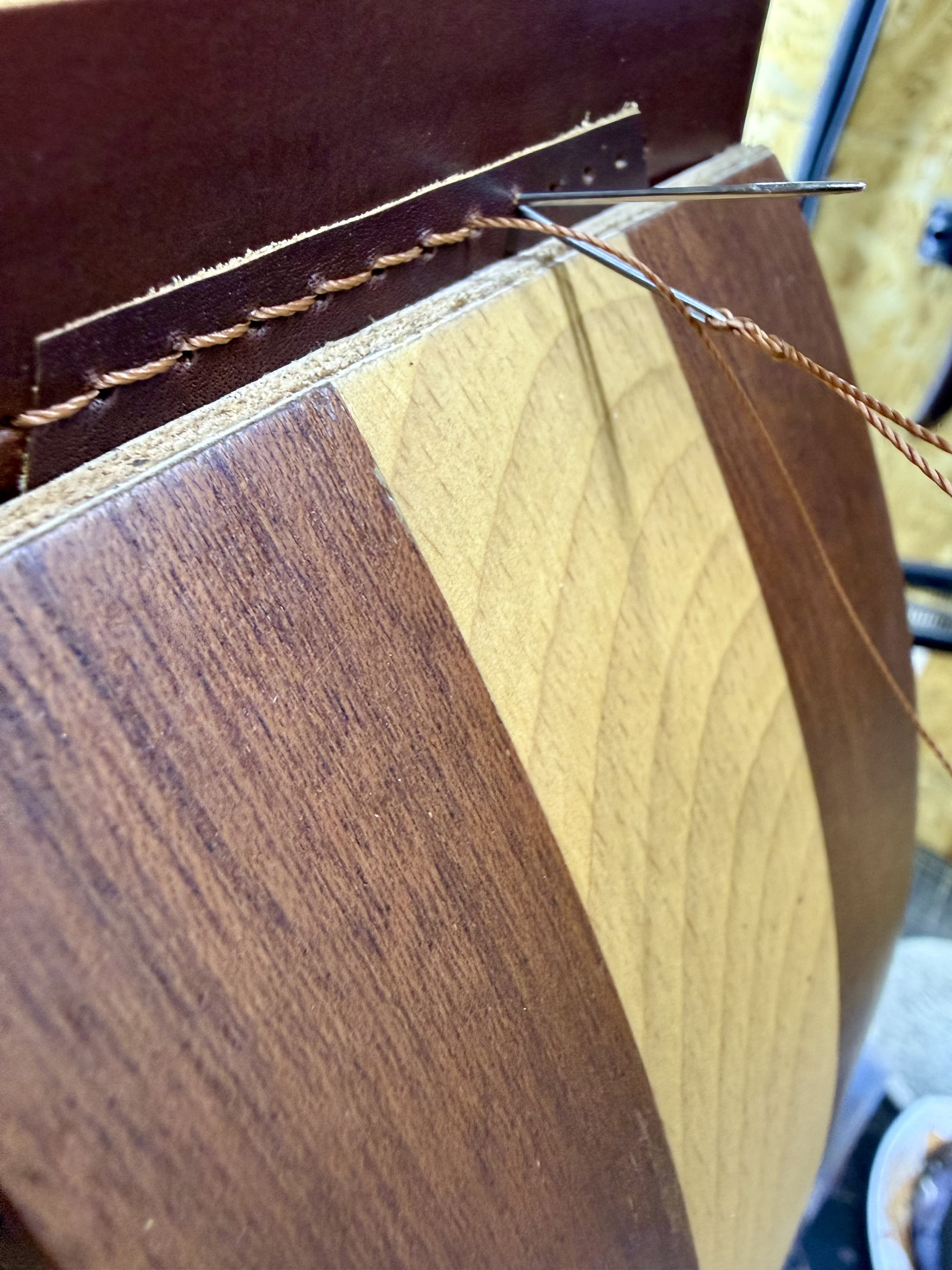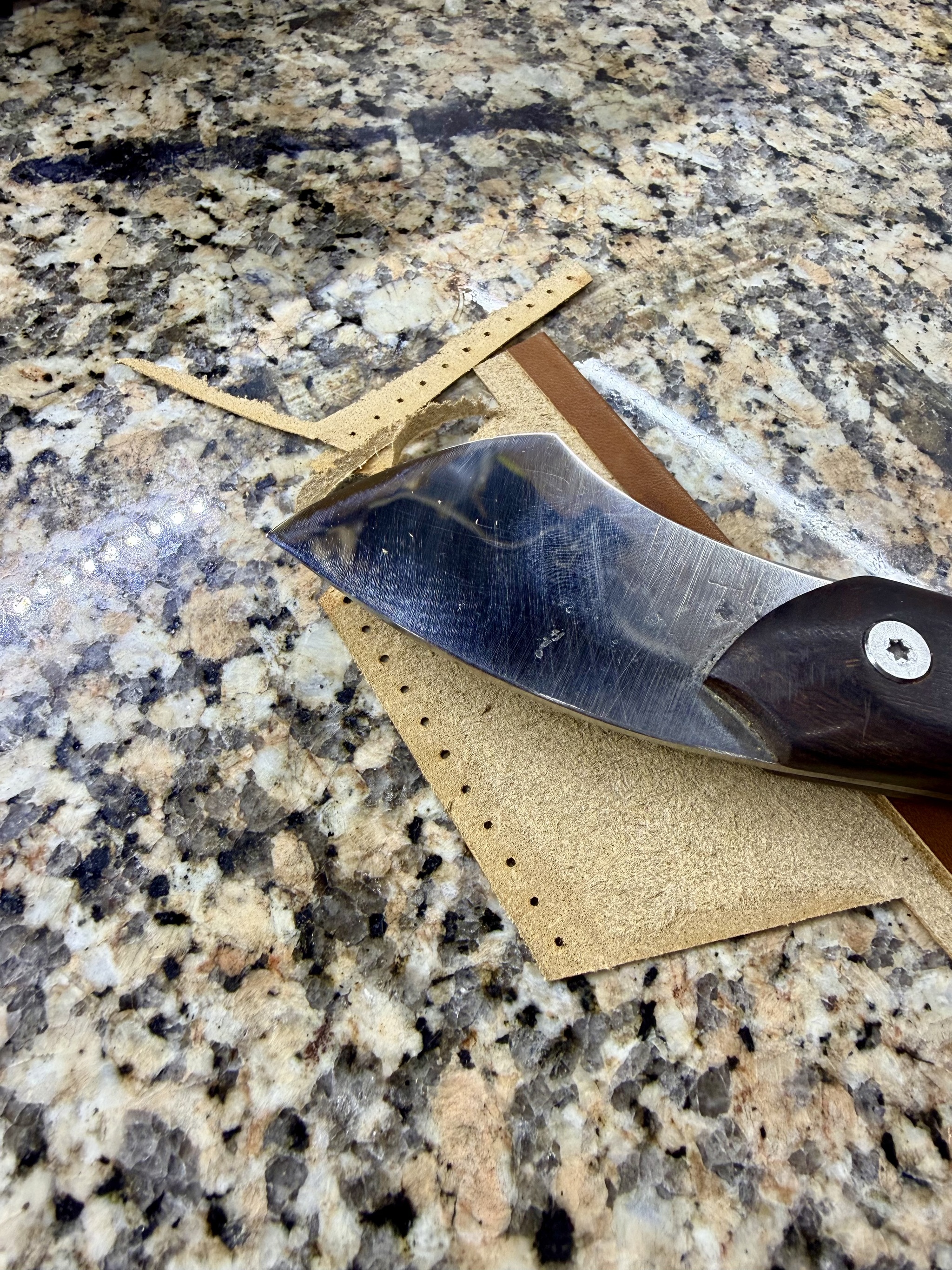 В обоих случаях это краст примерно 1.2 мм, покрашен, финиширован вручную. Нитки Винимо, пробойники «французы» 5 мм.