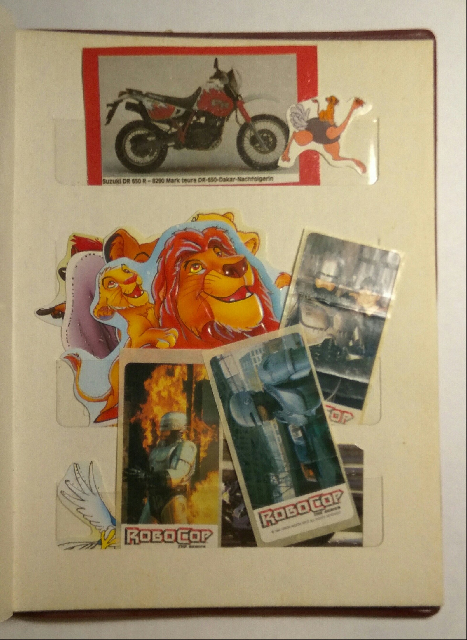 Альбом украшают наклейки от различных жвачек. Хаотично, без тематик, излишки.