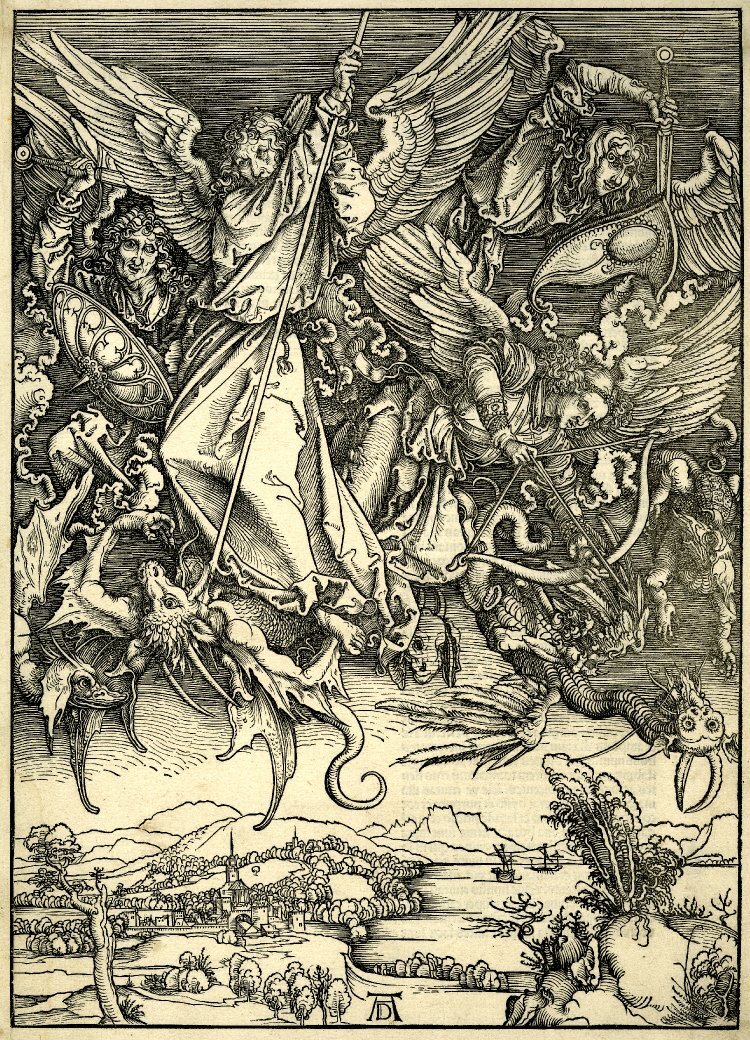 Уже к тридцати годам художник создал три знаменитых цикла ксилографий на религиозные сюжеты: «Апокалипсис» (1498), «Большие Страсти» (ок. 1497–1500) и «Жизнь Марии» (с 1500). В этих работах проявился его уникальный дар сочетать драматизм повествования с виртуозной детализацией. Позднее он обратился к станковым гравюрам, таким как «Адам и Ева» (1504), и философским «Мастерским гравюрам» — «Рыцарь, смерть и дьявол» (1513), «Святой Иероним в келье» (1514) и «Меланхолия I» (1514). Эти произведения, предназначенные для знатоков и коллекционеров, поражают техническим совершенством, интеллектуальной глубиной и психологической выразительностью, не имевшей аналогов в печатной графике до Дюрера.