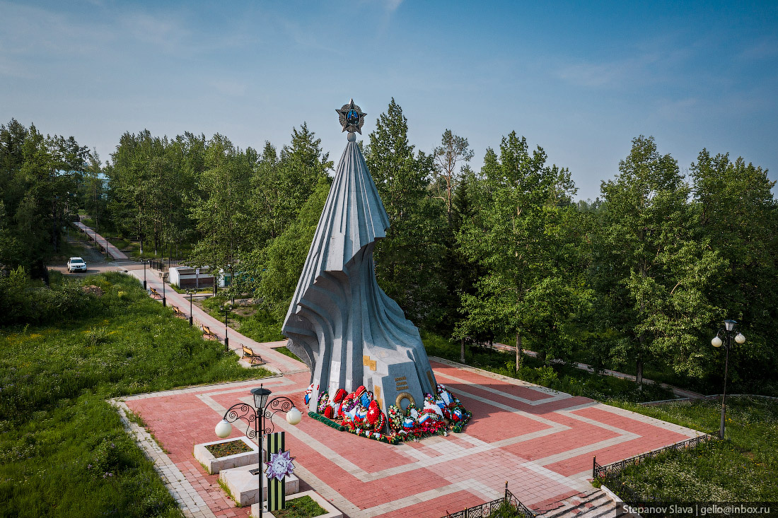 Аллея Героев Советского Союза в Алдане. Здесь расположен мемориал славы, который состоит из нескольких скульптурных сооружений. Самое массивное — обелиск в честь уроженцев города, погибших в Великой Отечественной войне.