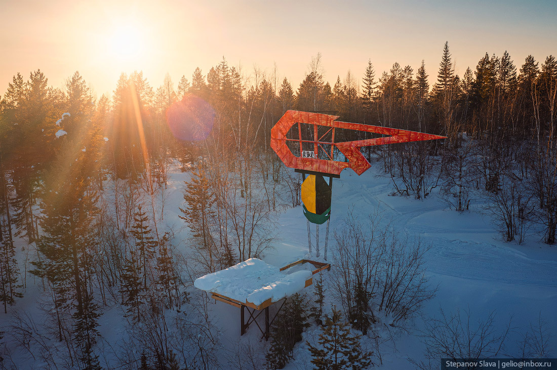 Декоративный объект «Факел». Эта композиция символизирует любовь к родному городу — и одновременно это высшая обзорная точка Алдана.