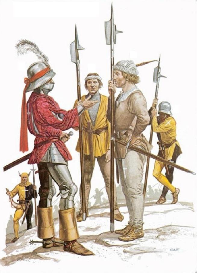 Сплоченные профессиональной и национальной дисциплиной, вооруженные своими алебардами, наемники отлично зарекомендовали себя в войнах XIV-XV веков. С алебардой они эффективно противостояли как сомкнутому строю пехоты, так и рыцарской коннице. Одним из показателей высокой оценки их боевых возможностей стал тот факт, что в весьма скором времени отряды швейцарских бойцов появились в качестве личных телохранителей при дворах многих европейских монархов.