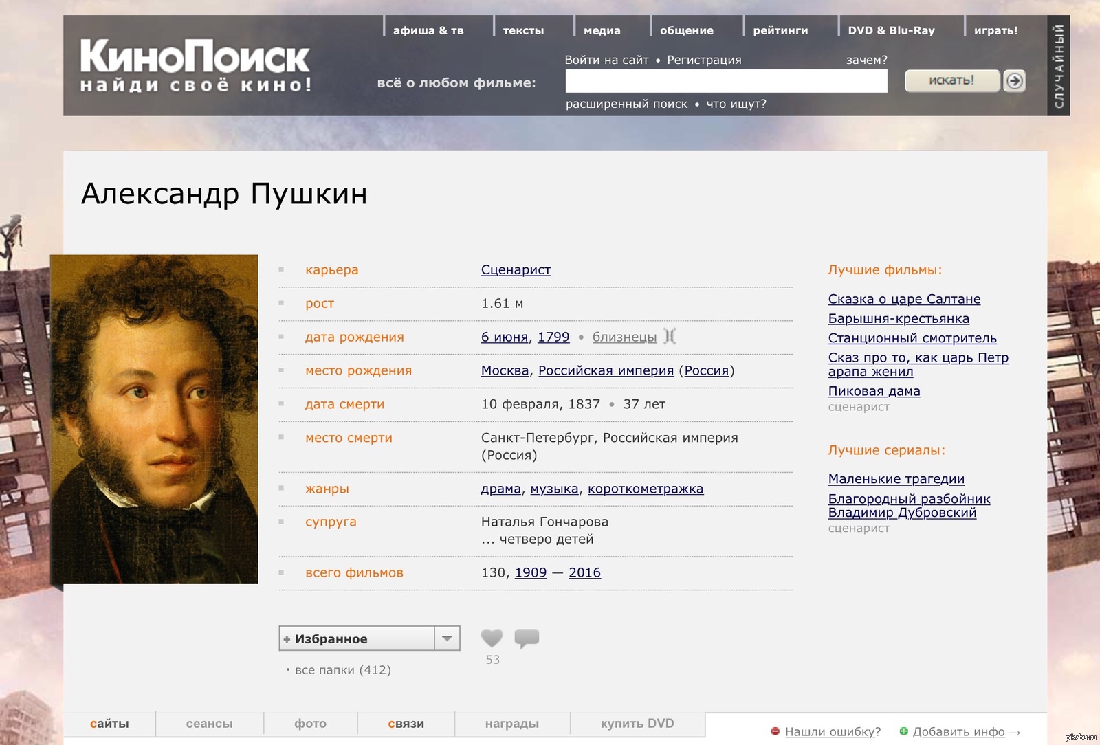8 kim5plus Александр Сергеевич меняет профессию 10 лет назад По-моему лучший российский сценарист Сайт КиноПоиск Пушкин