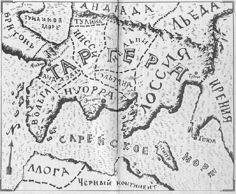 Государство Таргера составляют различные территории, управляемые различными макркизами, баронами и герцогами. Во главе государства стоит король. С севера Таргера граничит со своим давним противником - Андрадой. Между Андрадой и Таргерой находится Тулина - область богатая изумрудами. Эта область является объектом территориальнеых споров обоих государств. На северо-западе страна граничит с Бритонью. Судя по названию - некоторой аналогией древней Британии. Бритонь и Таргеру разделяют земли ламий - особой расы, присягнувшей королю. Я напишу про этот народ позже, когда буду писать про одного из персонажей. В Ирении, насколько я понял действовали Спаситель и Искупитель. Она находиться восточнее. Южнее всех этих земель лежит Сарейское (Средиземное?) море. И остров Гипр (Кипр?). Некотрые названия и география похожи до степени смешения. Южнее за морем лежит Чёрный континент (Северная Африка?), откуда происходит чернокожий спутник главного героя по имени Абоми. О нём тоже напишу отдельно. Вот такой вот получился мир и такая география. Перейдём к главным действующим лицам.