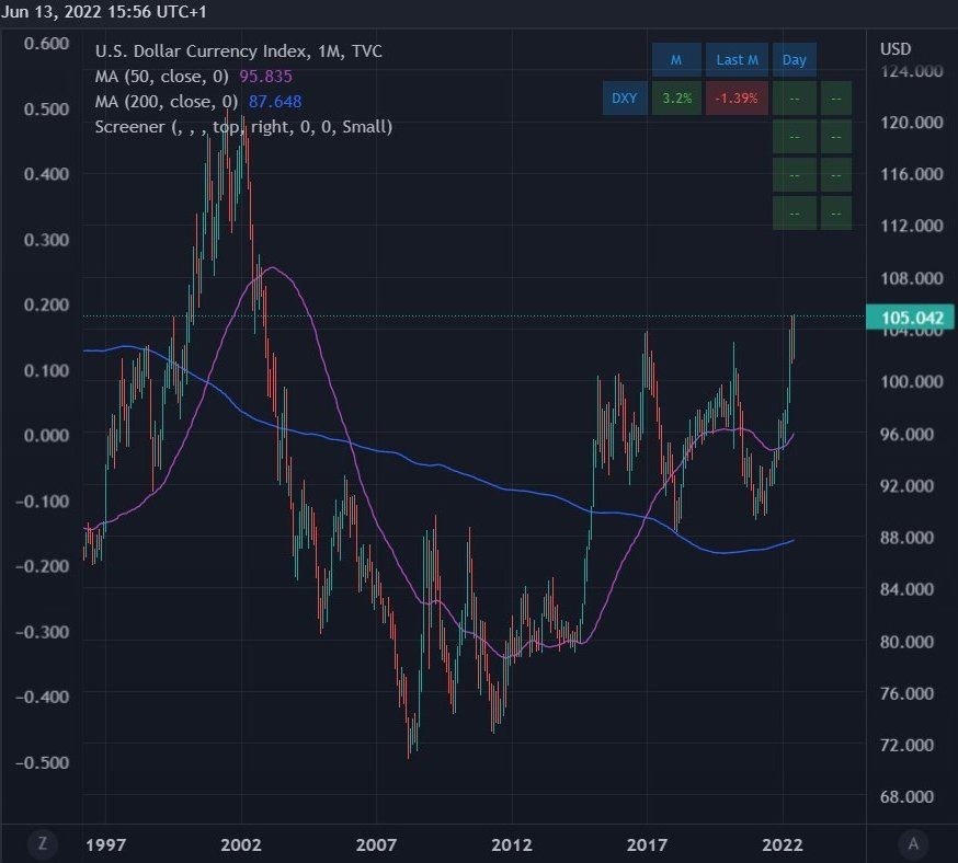 Курс доллара к 6 ключевым мировым валютам достиг рекордных значений с 2002 года. Рынок готовится к сильнейшему с 1994 года ужесточению политики ФРС: в эту среду американский Центробанк может повысить ставку сразу на 0,75 п.п.