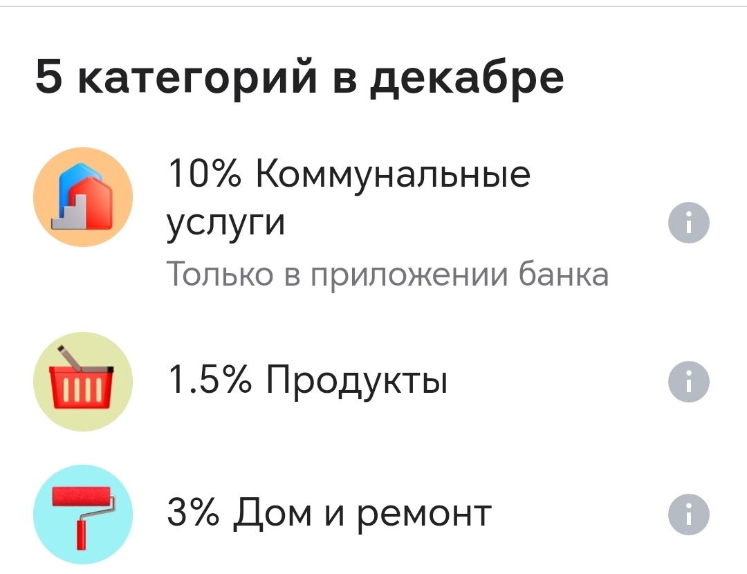Обманом не занимаемся. Кэшбэк начисляем согласно условиям категории. Максимальную сумму при наличии показываем в разделе Кэшбэк и сервисы → категории на декабрь → «i».