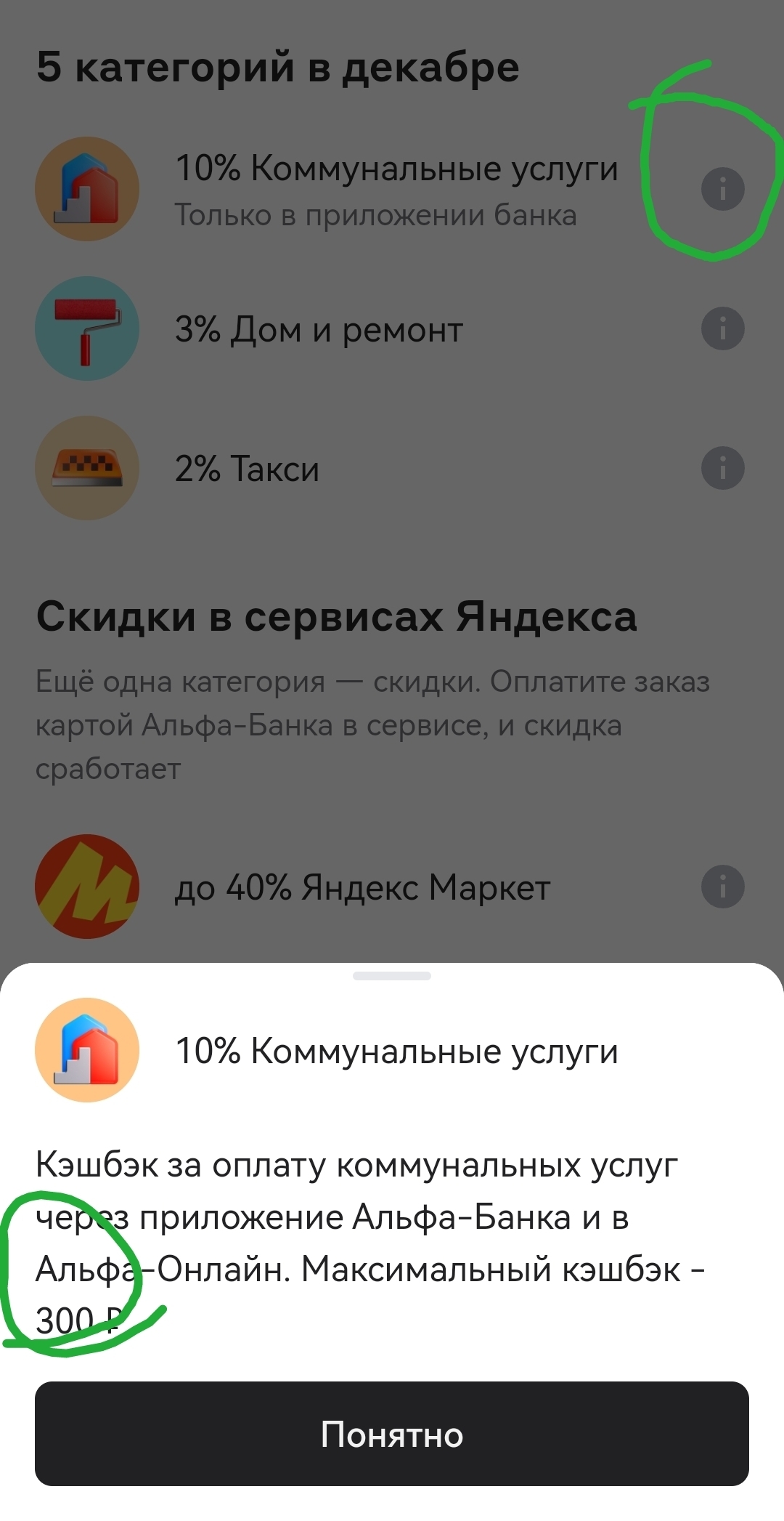 Я клиентка Альфа-банка, одна из категорий кэшбека в декабре коммунальные платежи с кэшбеком 10% от суммы. Оплатила 7017 рублей, кэшбек получила 300 рублей, что никак не 10 % от 7000. В чате банка получила ответ:Извините, ничем не можем помочь,триста рублей - максимум. Альфа - банк - лжецы и мошенники.