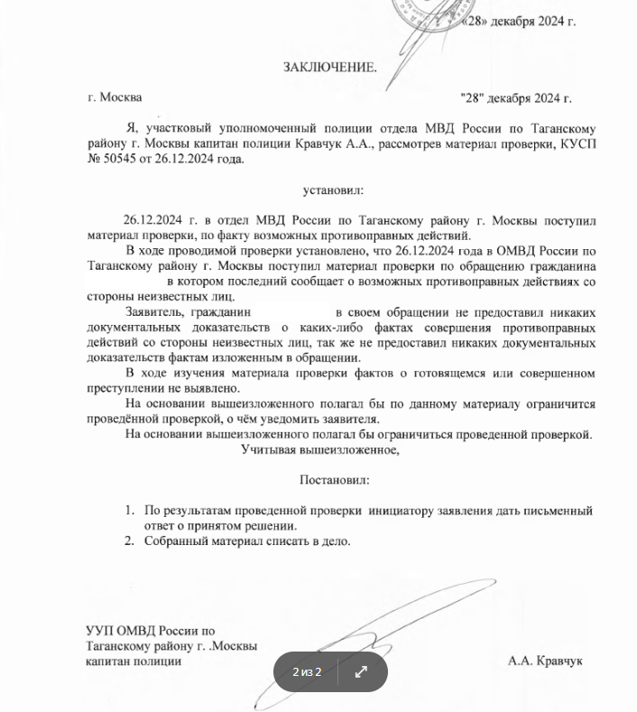 А вот отписалось МВД, которые тоже с администрации получили запрос.