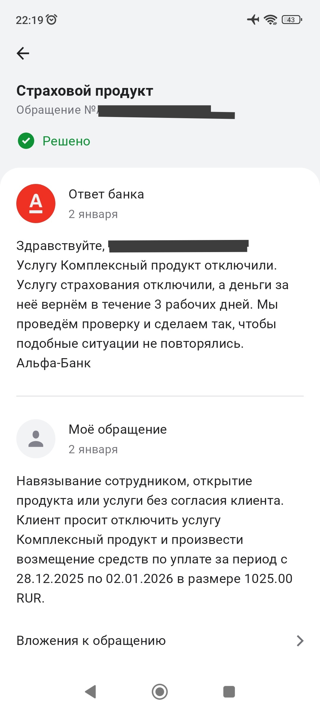 Альфа-Банк навязал комиссию за организацию страхования на кредитную карту
