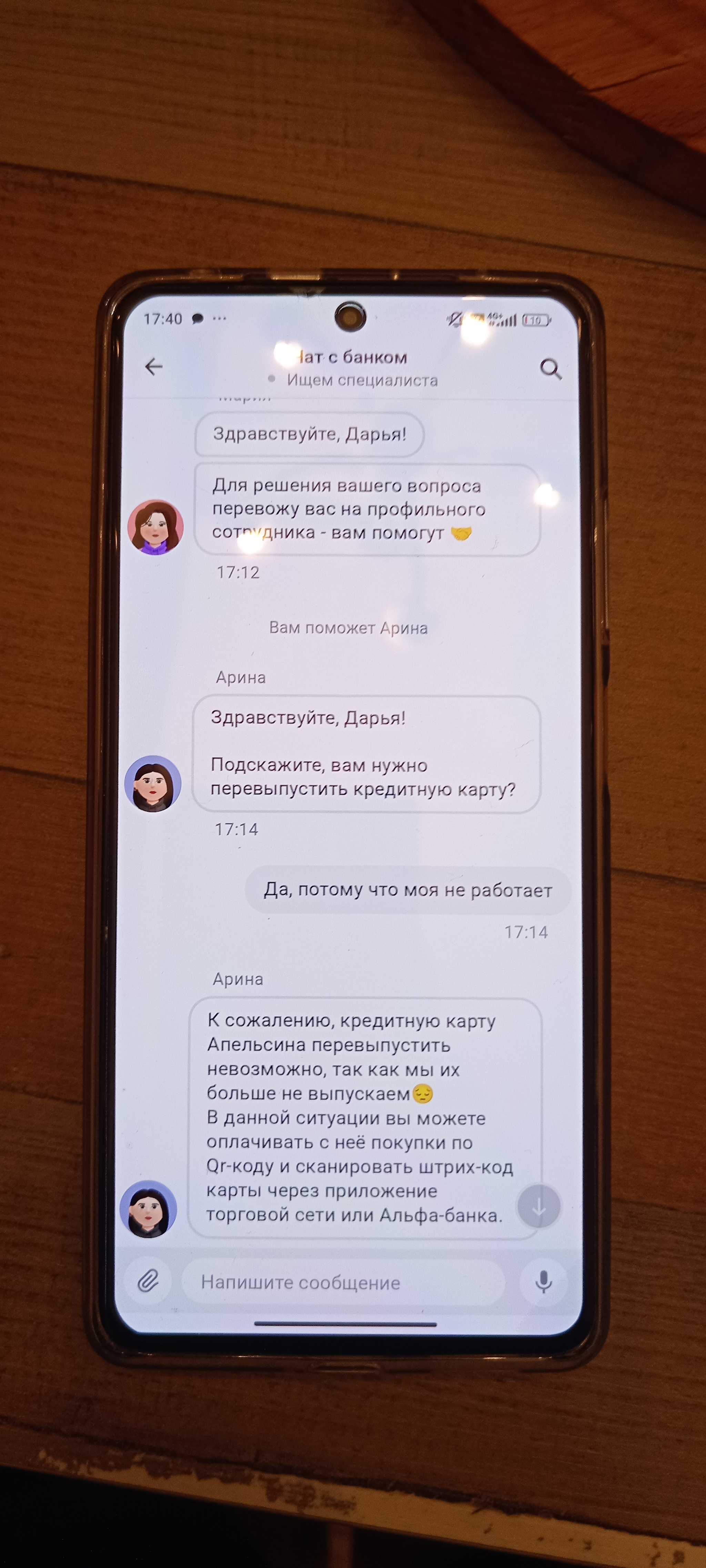 За год использования, карта пришла в негодность, стерлась магнитная лента, штрих код и личные данные. На простую просьбу перевыпустить карту, Альфа-банк ответил отказом, аргументируя ответ так: "К сожалению, кредитную карту Апельсина перевыпустить не возможно, так как мы их больше не выпускаем. В данной ситуации вы можете оплачивать с нее покупки по qr коду и сканировать штрих код карты, через приложение торговой сети или Альфа-банка".