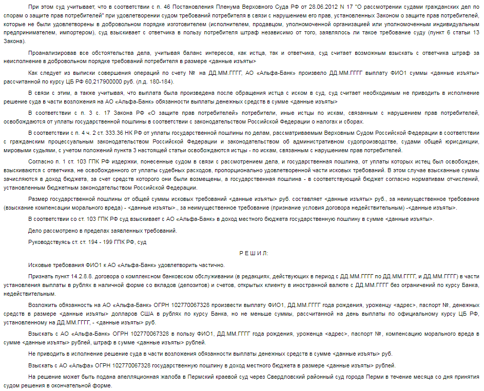 Альфа-Банк отказывает выдать валюту по курсу ЦБ ч. 5 - решение суда