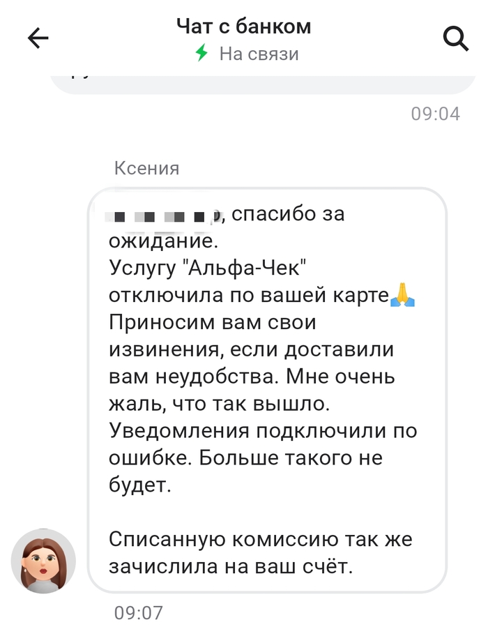 Поддержка ответила, что услугу подключили по ошибке (wtf?), ее отключат и списания отменят. Компенсировать неудобства банк отказался.