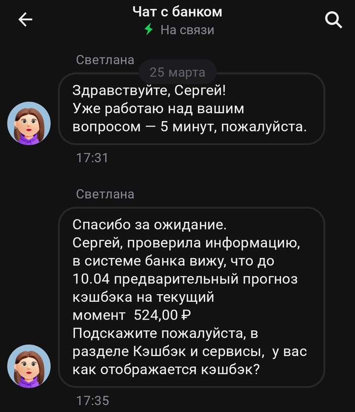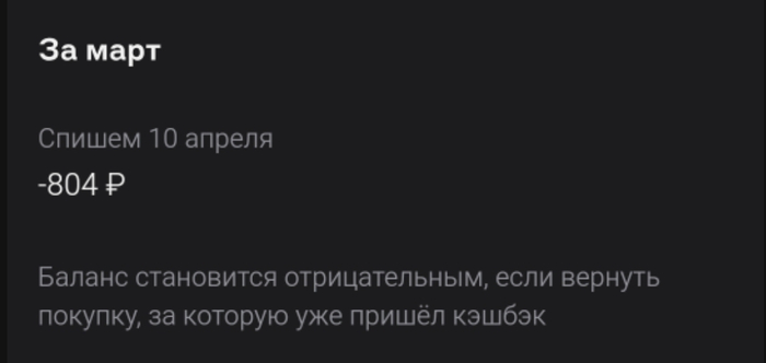 Спустя неделю - еще нет. А уже 10 число и кешбек списан