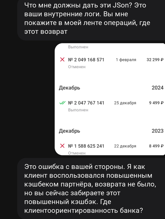 Что в ответ? В ответ Json - который должен мне показать, что был возврат - ну это уже смешно😁 Как, я - рядовой пользователь банка, должен по их внутреннему Json понять что был действительно возврат?