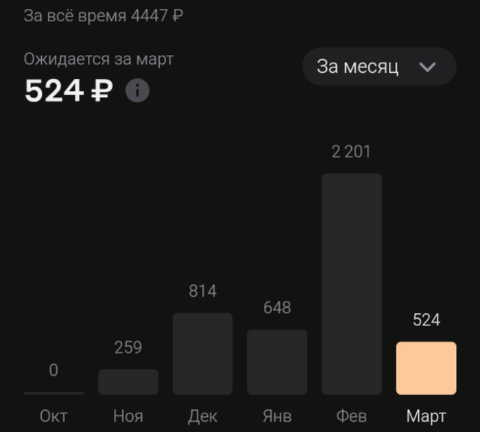 И так, март идёт, кешбек тратится, наступает конец месяца. Захожу в Альфа-Бутылку посмотреть - а сколько же я за март получил кешбека?