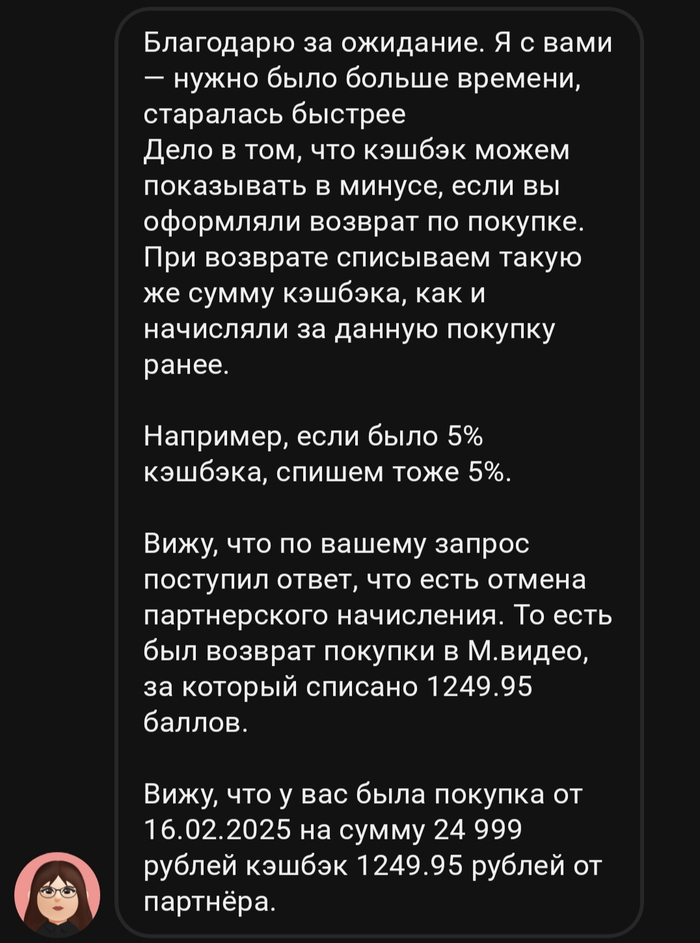Но как же так? Ведь сотрудник, которая составляла обращение не видела возврата
