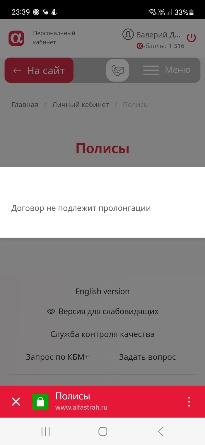 5 лет, 5 сука лет я покупал каско в этой компании на 2 своих автомобиля. 5 лет, 5 сука лет я покупал ОСАГО в этой компании по завышенной цене, потому что оно давало скидку на каско, причем покупал самое дорогое каско. Всегда. Альфа бизнес. Но наступил 2023 и мне отказали в пролонгации договора. А что произошло? Я просто воспользовался договором.