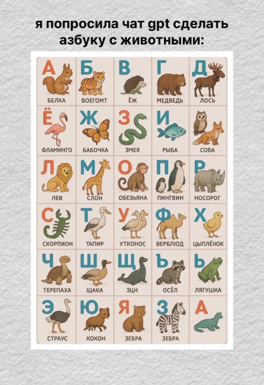 1 z312 Алфавит от ChatGPT 7 месяцев назад Из инстаграмма j.fedurina Контент нейросетей ChatGPT Алфавит Нейронные сети Ещё 0