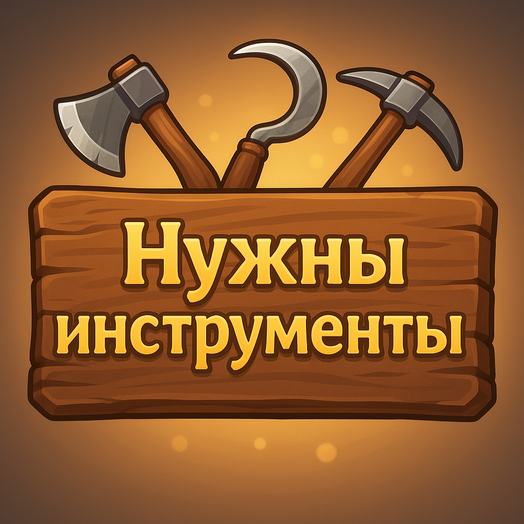 Добавлена подсказка: она будет появляться в момент сбора ресурсов, если у вас нет нужных инструментов. Инструменты можно купить у торговца.