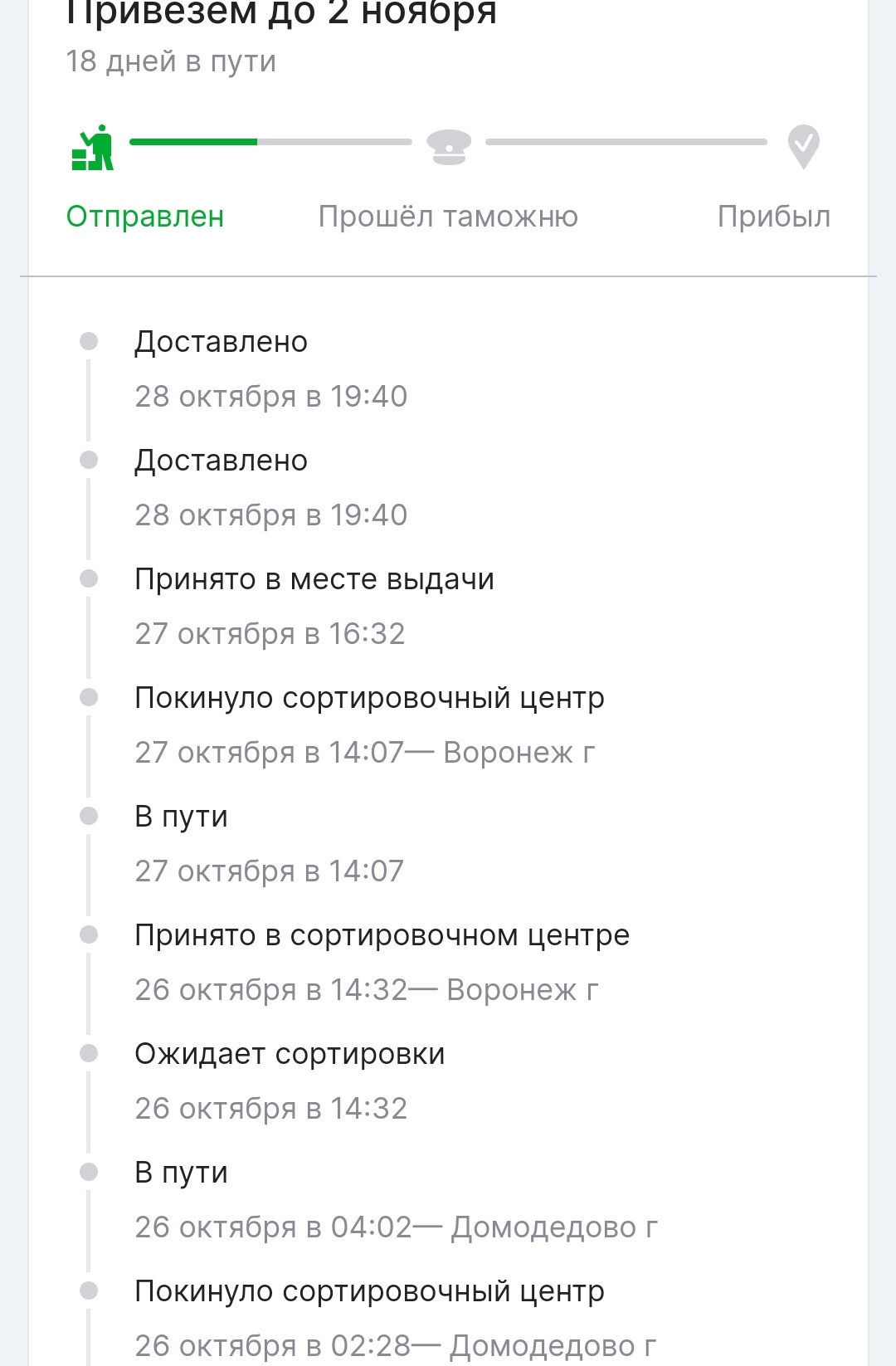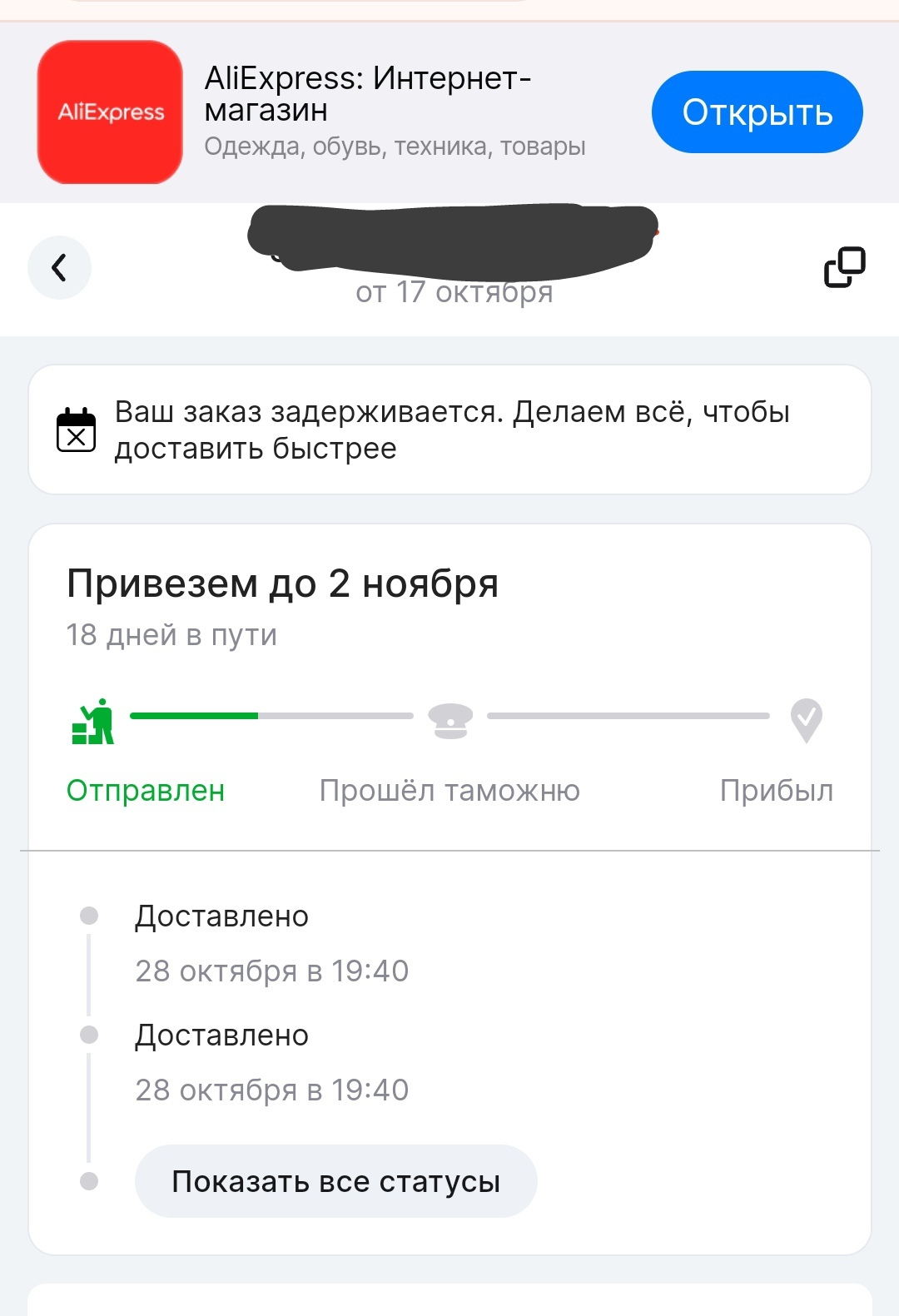 28.10 в статусе появилось доставленно. Ну думаю хорошо, раньше срока. А не все так просто оказалось