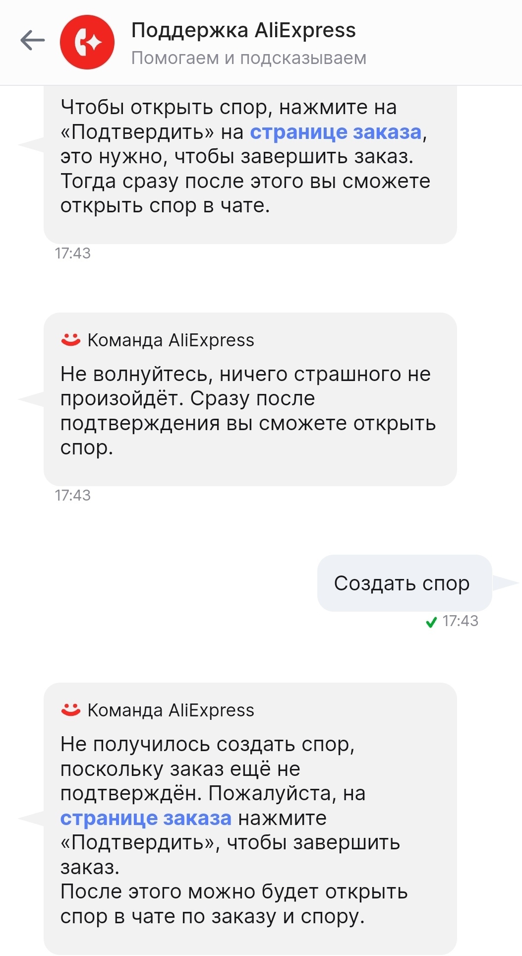 Внимание вопросы. Кто с таким сталкивался и что делать? Спор можно открыть только после того, как подтвержу получение? Там есть возможность указать, что де факто не получал, и вообще в доставлена в другой город? Мой адрес указанный для доставки доставки правильный. Нужна помощь