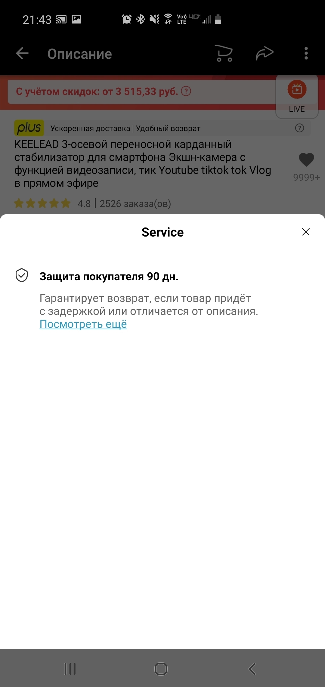 Удобненько, подумал я и заказал стабилизатор для смартфона со страницы https://aliexpress.ru/item/4001253147172.html