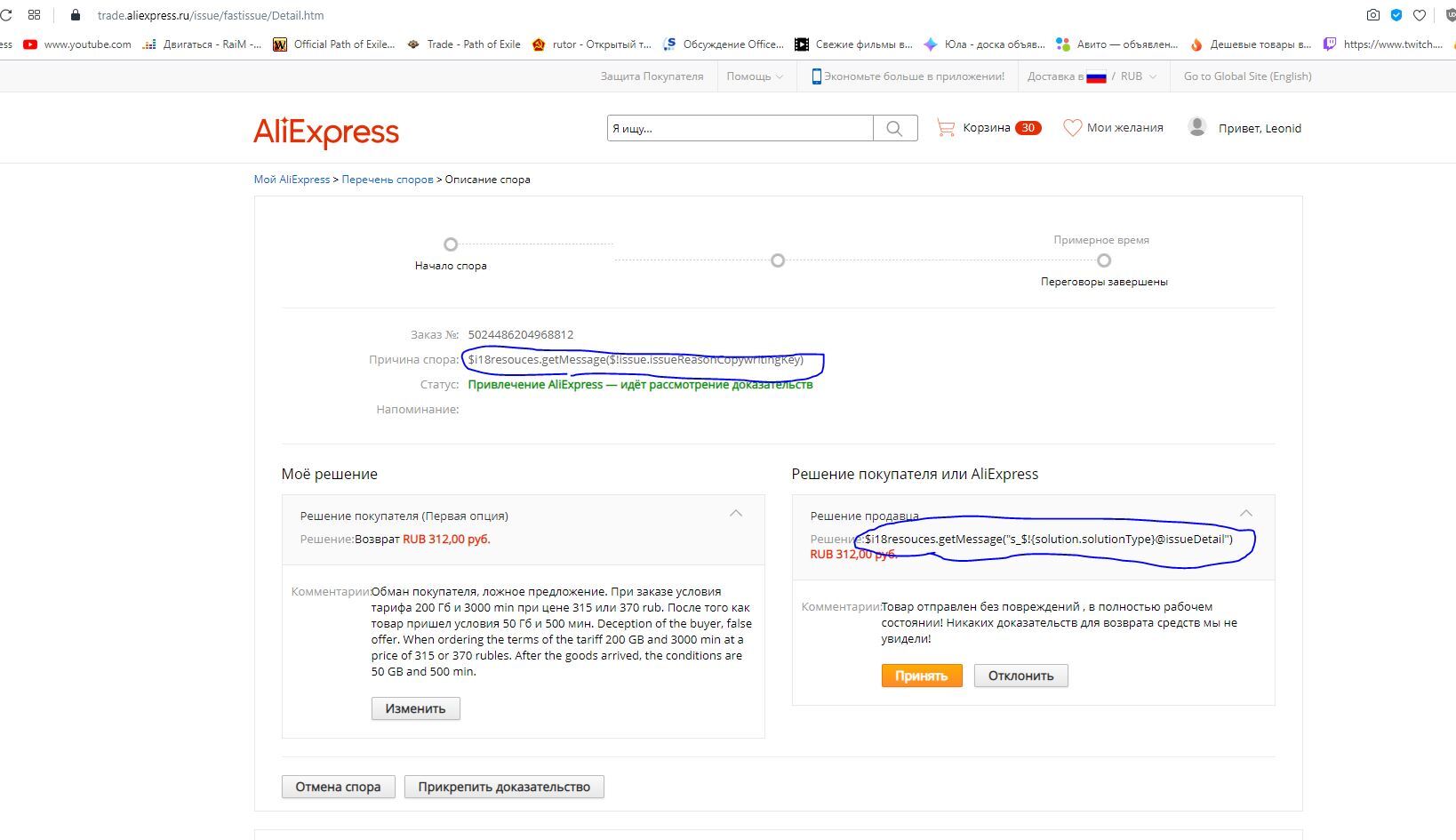 Проблема 3: Невозможность добавления доказательств в спор ни на телефоне ни в браузере, с телефона тоже не добавляется ни с какой версии так и не решил эту проблему.